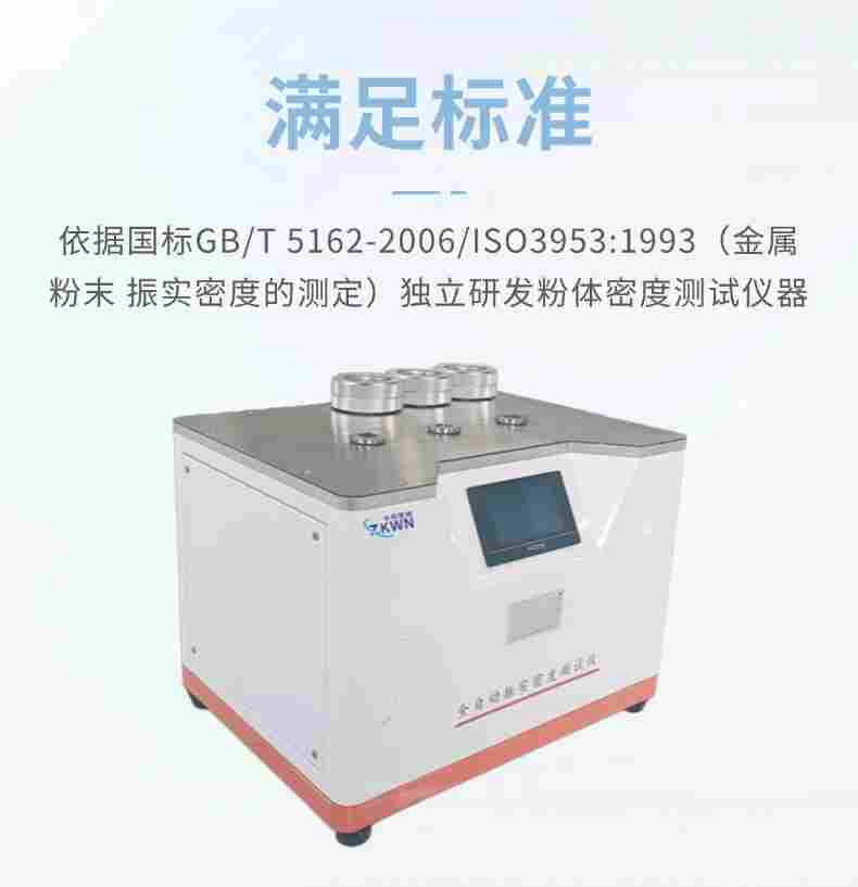 粉體密度測(cè)試儀是我公司依據(jù)國(guó)標(biāo)GB/T 5162-2006/ISO3953:1993(金屬粉末 振實(shí)密度的測(cè)定)獨(dú)立研發(fā)制造的粉體密度測(cè)試儀器,具有知識(shí)產(chǎn)權(quán)。儀器含蓋國(guó)標(biāo)GB/T 5162-2006/ISO3953:1993中的各項(xiàng)指標(biāo)。
