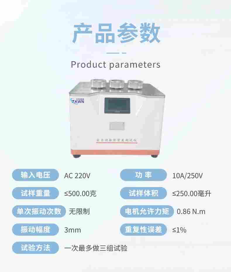 型粉體密度測(cè)試儀由電機(jī)、振動(dòng)組件、PLC處理器和7寸高清觸摸屏等部件組成。可自設(shè)振動(dòng)次數(shù),振動(dòng)過(guò)程中振動(dòng)組件以小角度旋轉(zhuǎn)保證物料均勻等特點(diǎn)。